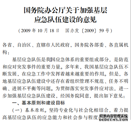 國務(wù)院辦公廳關(guān)于加強基層 應(yīng)急隊伍建設(shè)的意見