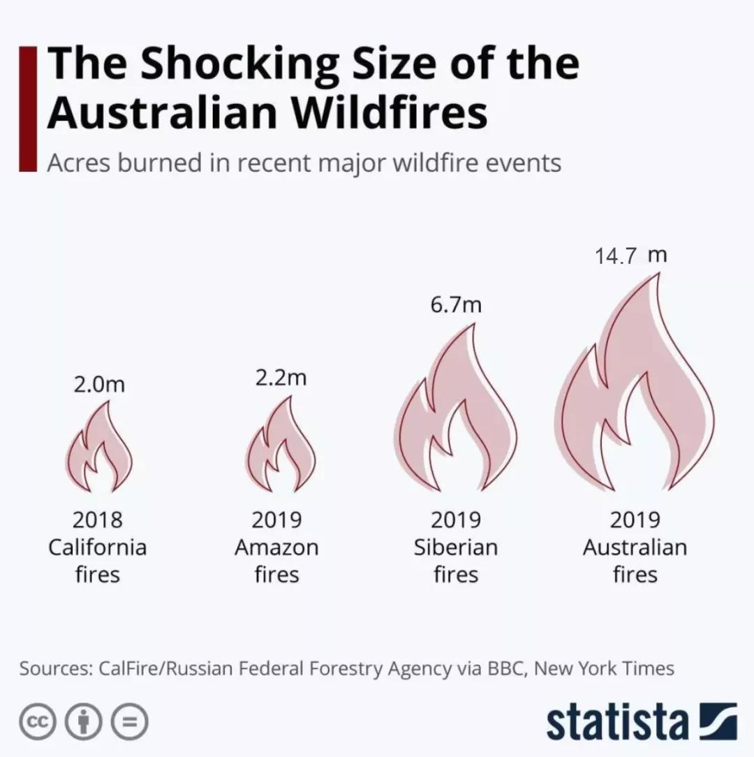 2019年9月6日,澳大利亞新南威爾士州北部地區發生了第一場山火。人們還沒能料想到,這僅僅只是個開始。截止2019年12月底,僅在新南威爾士州和昆士蘭州,就相繼發生了超過140起森林火災。這場持續數月的山火,成為澳大利亞有史以來最嚴重的火災,也給原本生活在廣袤森林的動物們帶來了滅絕性的災難!