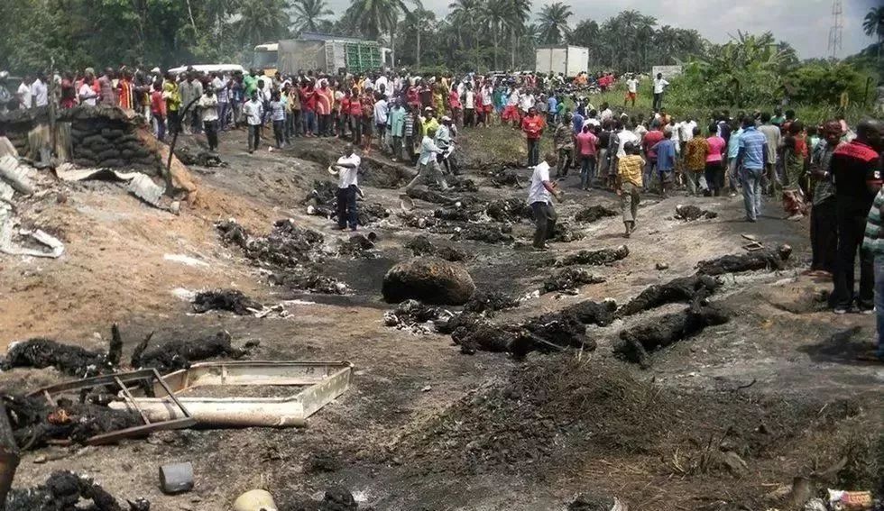 2012年時7月12日,一輛運送汽油的車輛在尼日利亞的尼日爾河三角洲地區(qū)發(fā)生事故并引發(fā)大火,據(jù)悉,該油罐車在行駛中發(fā)生事故造成原油泄漏,當(dāng)?shù)厣习偃饲叭ナ鹿尸F(xiàn)場哄搶,隨后爆炸引發(fā)大火,上百人被燒死,包括許多婦女和兒童。