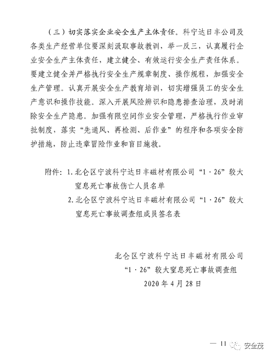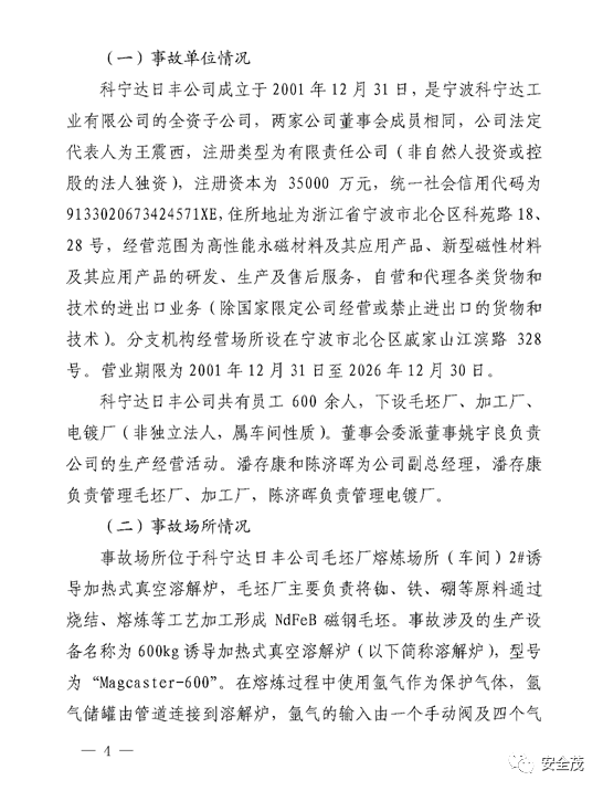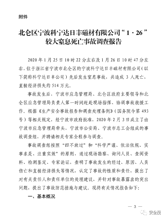 2020年5月27日,寧波科寧達日豐磁材有限公司收到《寧波市人民政府關于北侖區寧波科寧達日豐磁材有限公司“1·26”較大窒息死亡事故調查報告的批復》,現將事故情況公告如下: