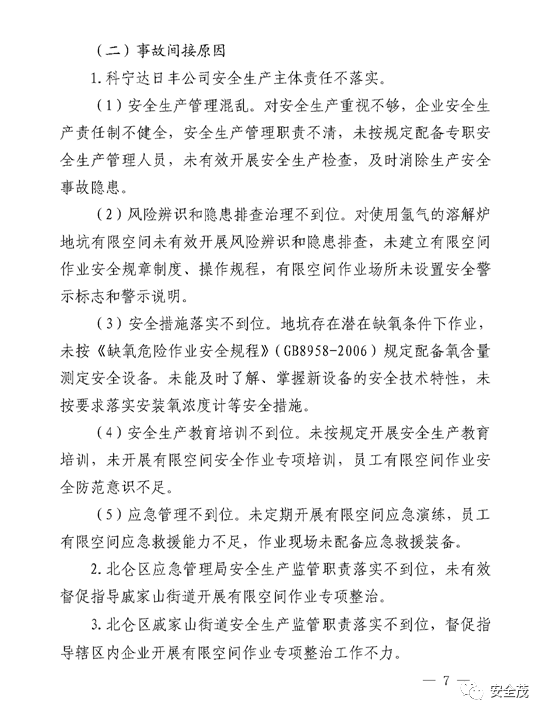 整改措施:科寧達日豐公司深刻汲取事故教訓,舉一反三,認真履行企業安全生產主體責任,建立健全、有效運行安全生產責任體系。嚴格執行安全生產規章制度、操作規程,加強安全生產管理。認真開展安全生產教育培訓,切實增強員工的安全生產意識和操作技能。深入開展風險辨識和隱患排查治理,及時消除安全生產隱患。加強有限空間作業安全管理,嚴格執行作業審批制度,落實“先通風、再檢測、后作業”的程序和各項安全防護措施,防止違章冒險作業和盲目施救。
