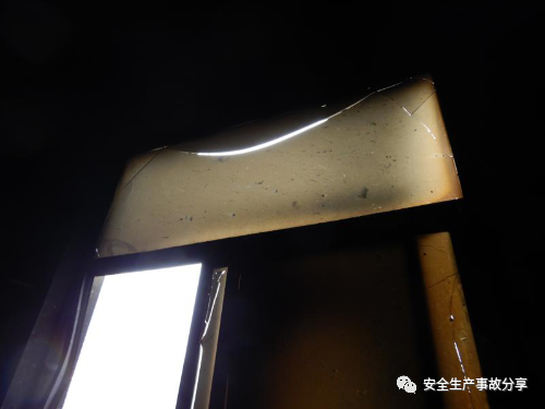 三是氣體爆炸泄壓也有一定的方向性,往往從薄弱墻體或者泄壓口處泄放,距離現場較近處玻璃會出現破碎往外散落現象,從現場狀況來看,玻璃窗結構較為完整,未出現整體破碎往外散落的現象(見圖6),證明未受到沖擊波方向性的爆炸沖擊。