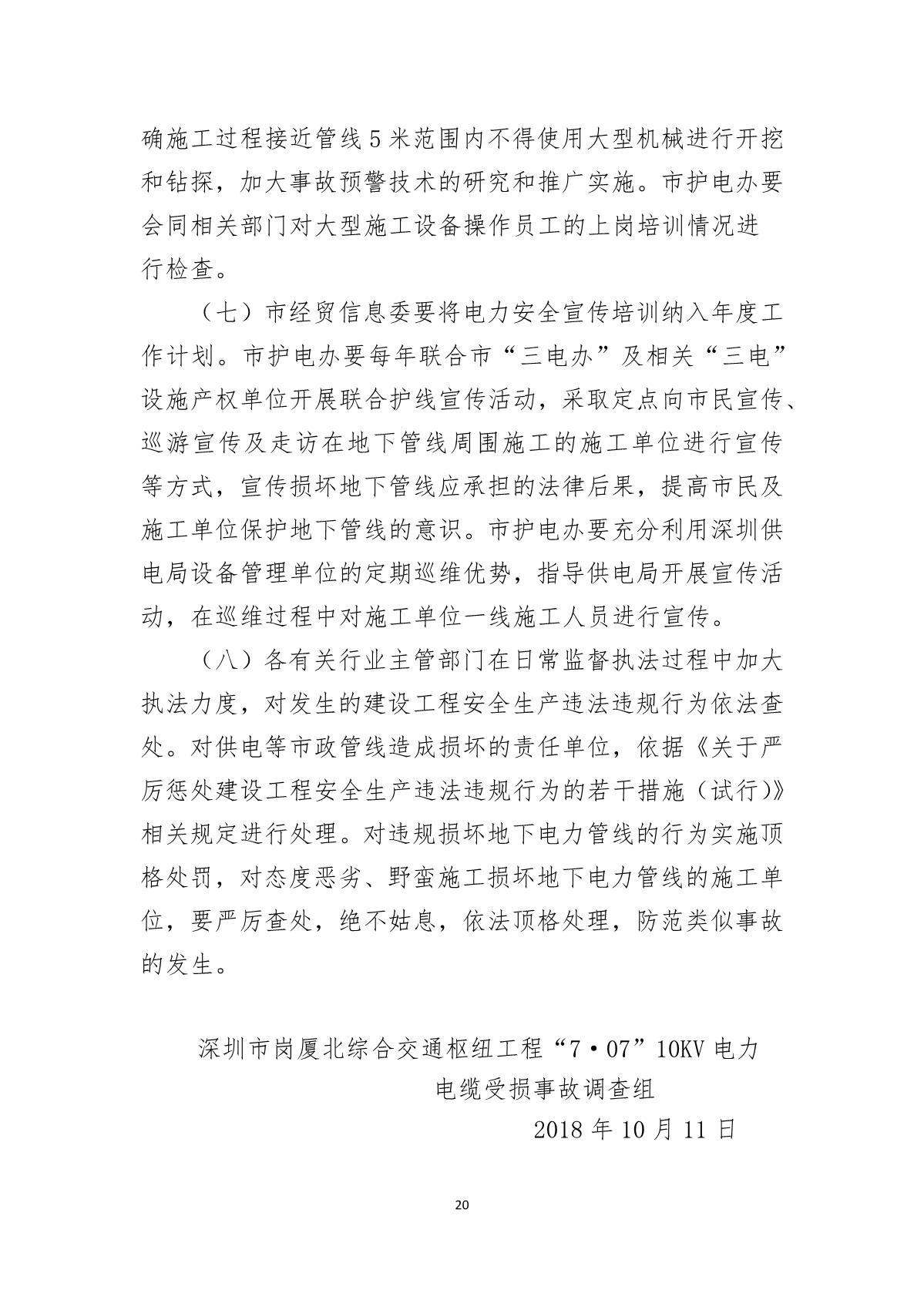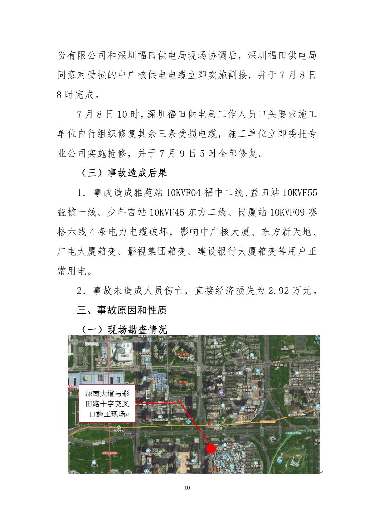 深圳市崗廈北綜合交通樞紐工程“7.07”10kv電力電纜受損事故調查報告