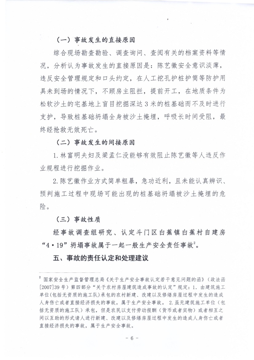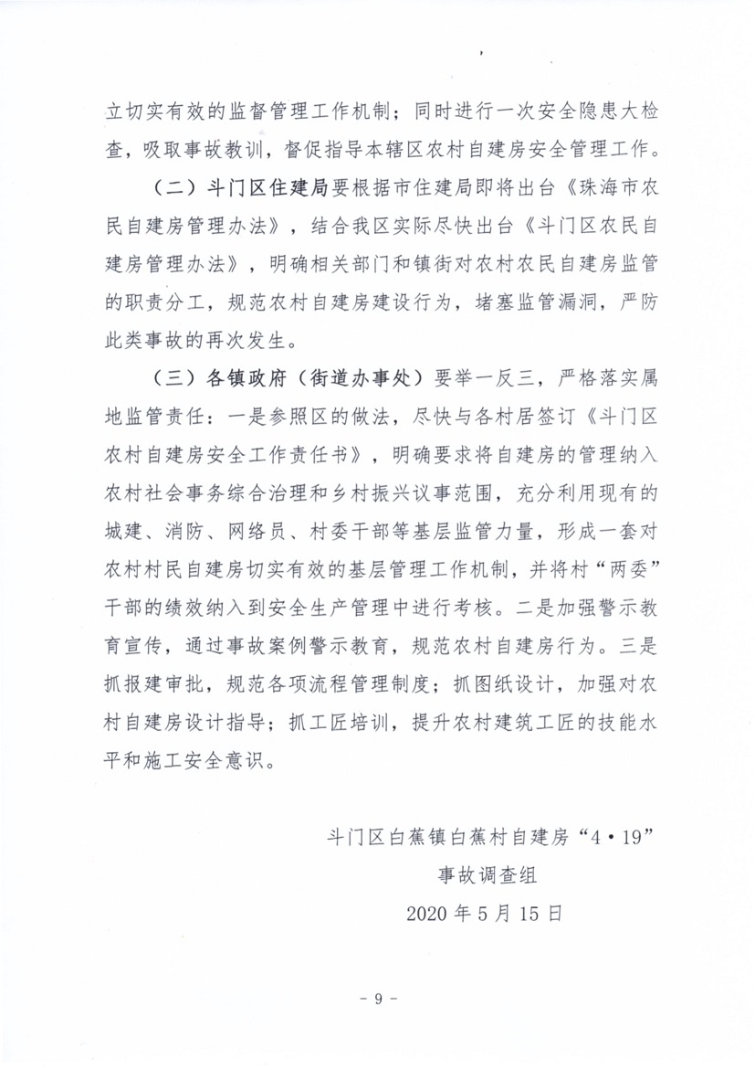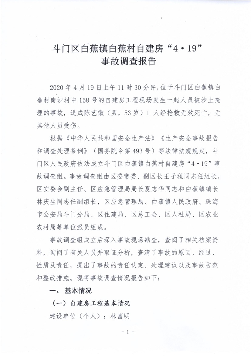 斗門區白蕉鎮白蕉村自建房“4·19”事故調查報告