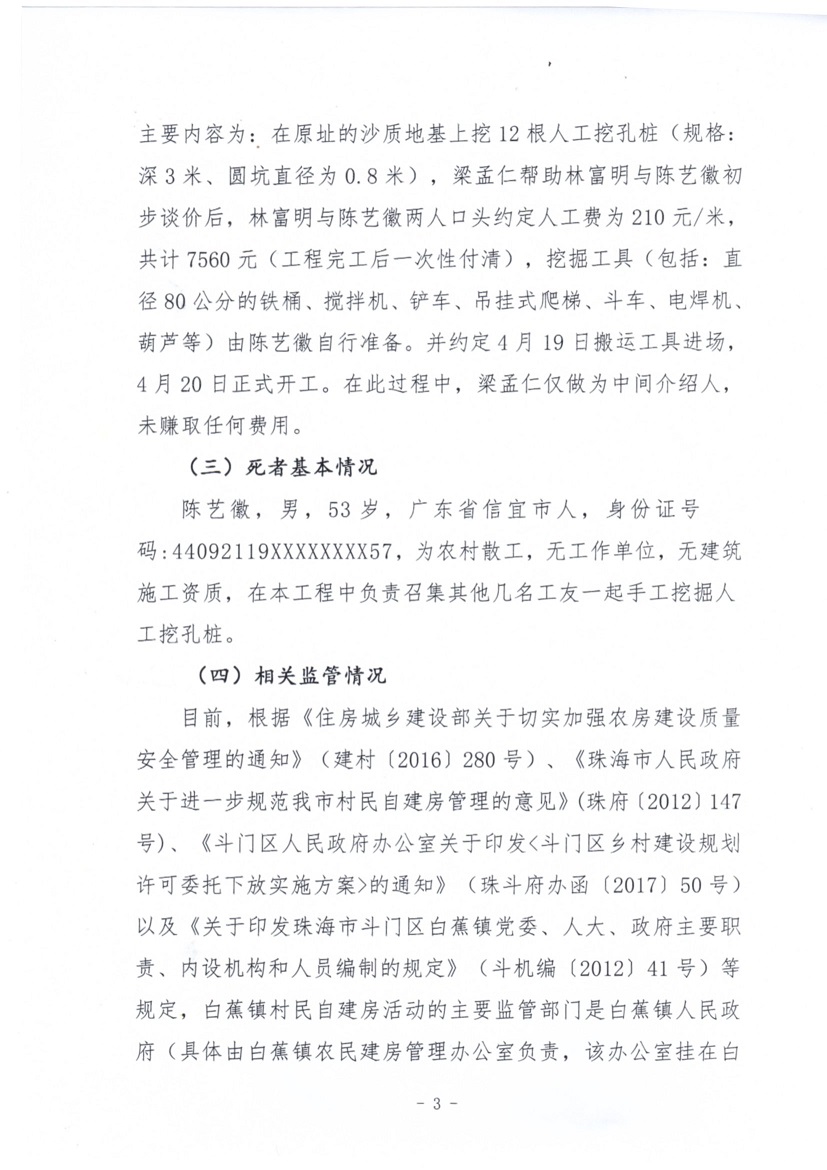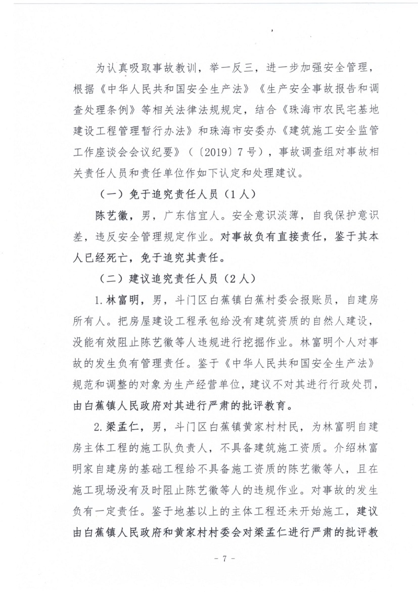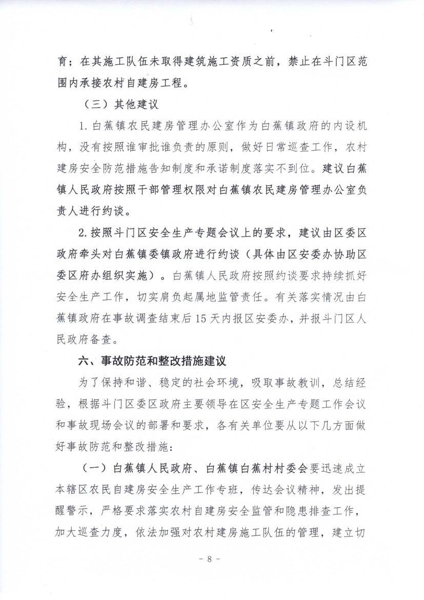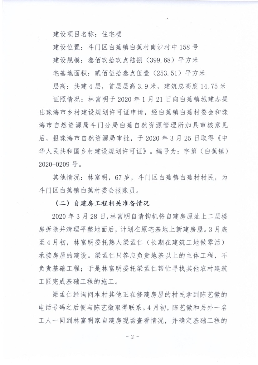 斗門區白蕉鎮白蕉村自建房“4·19”事故調查報告