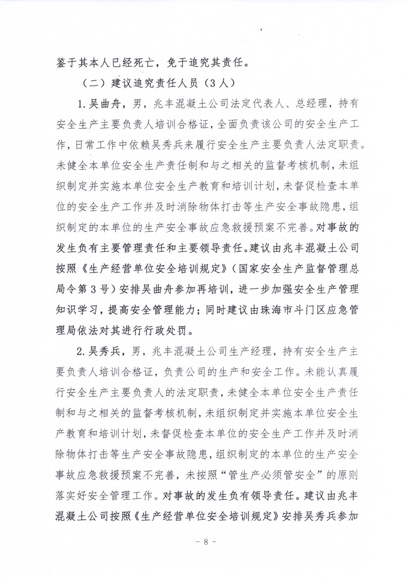 珠海市兆豐混凝土有限公司“4·19”一般物體打擊事故調查報告
