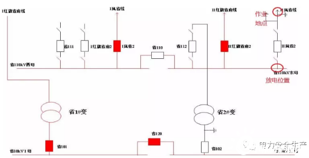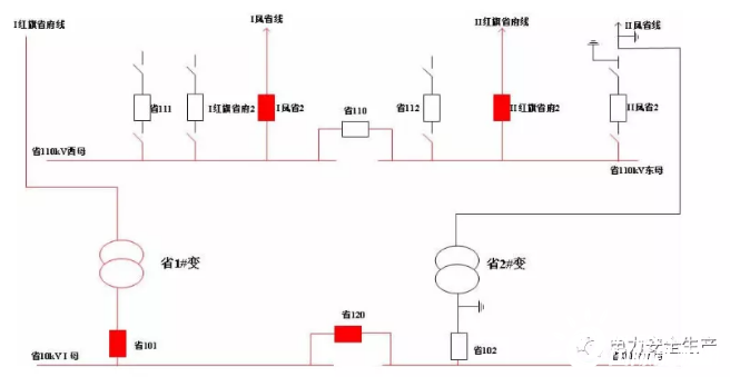 事發(fā)項(xiàng)目為某公司110千伏某變電站110千伏配電裝置改造,改造內(nèi)容為更換110千伏室內(nèi)敞開式手車斷路器,施工中標(biāo)單位為某集團(tuán)有限公司電力安裝分公司(省管產(chǎn)業(yè)單位,簡(jiǎn)稱“安裝分公司”)。為不影響重要用戶供電,改造期間變電站采用Ⅰ紅旗省府線直接串帶省1#變、Ⅱ鳳省線直接串帶省2#變的過渡方式運(yùn)行。6月12日改造完成后,110千伏母線恢復(fù)運(yùn)行。(運(yùn)行方式見圖1、圖2)