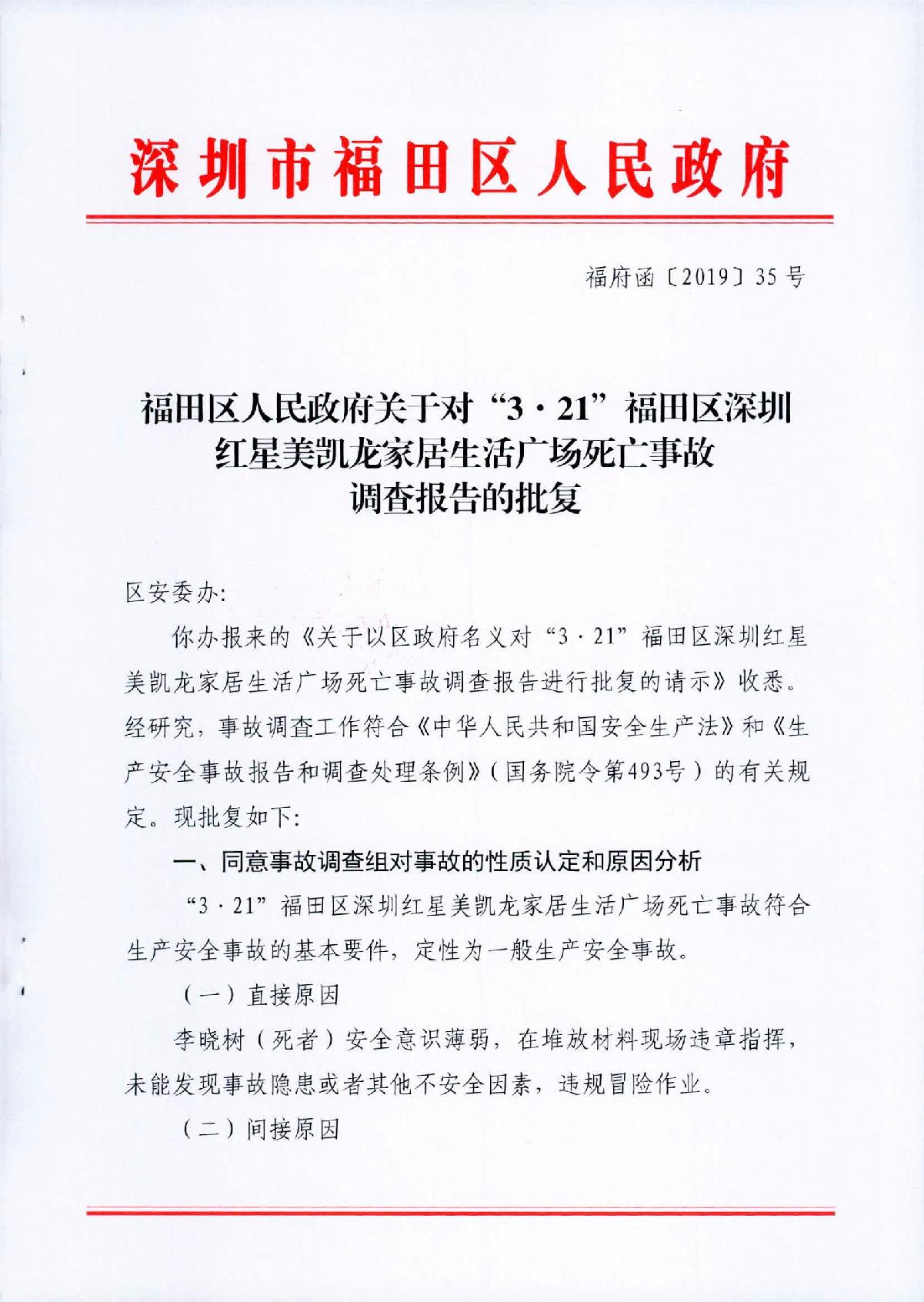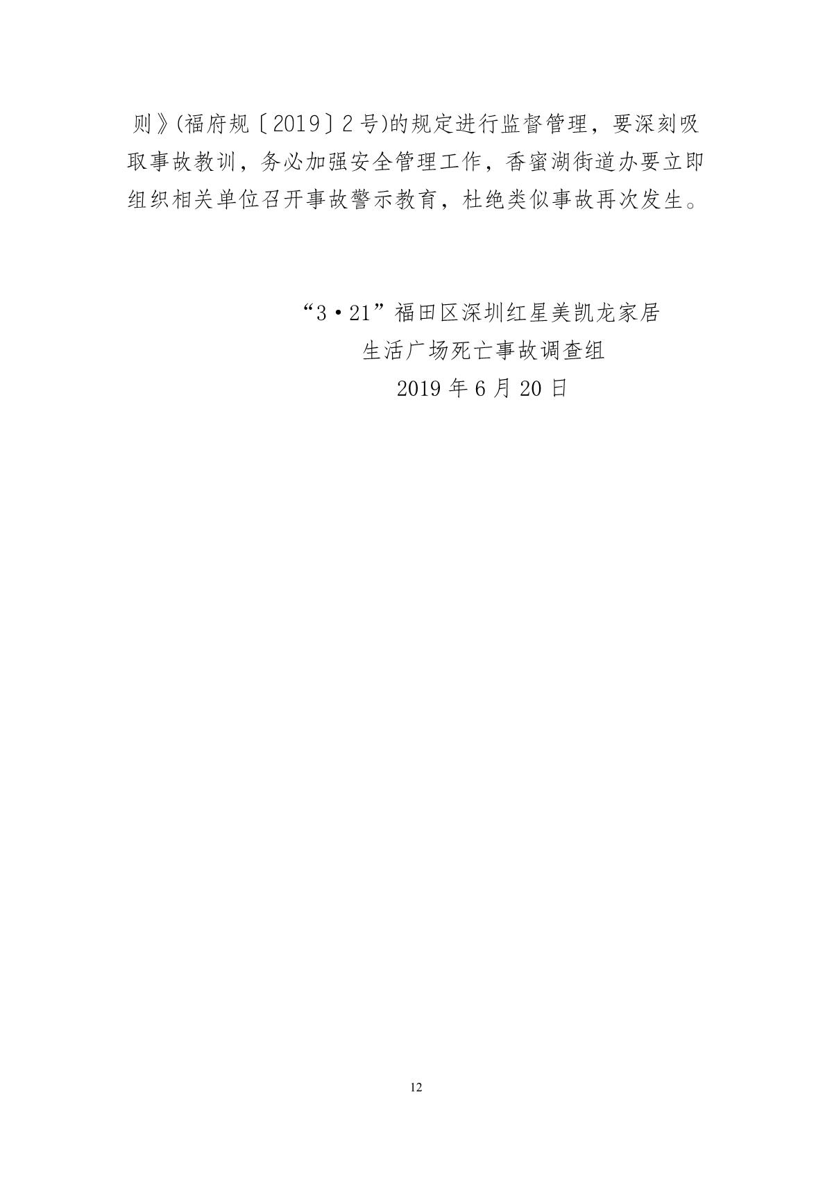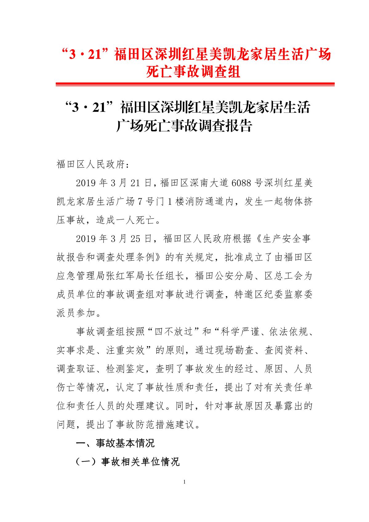 “3.21”福田區深圳紅心美凱龍家居生活廣場死亡事故調查報告